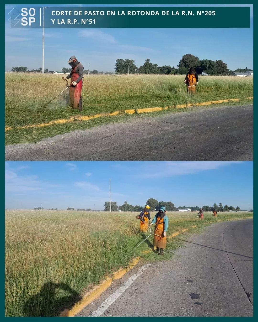 En el día de hoy personal de la dirección de servicios urbanos y el área de espacios verdes, llevo a cabo un operativo de mantenimiento y corte de pasto en la mencionada rotonda en colaboración con las direcciones de vialidad Provincial y Nacional. Se trabaja con desmalezadoras y cortadoras de arrastre de 3 puntos con el fin de mejorar la visibilidad y facilitar el mantenimiento futuro del mencionando espacio publico
