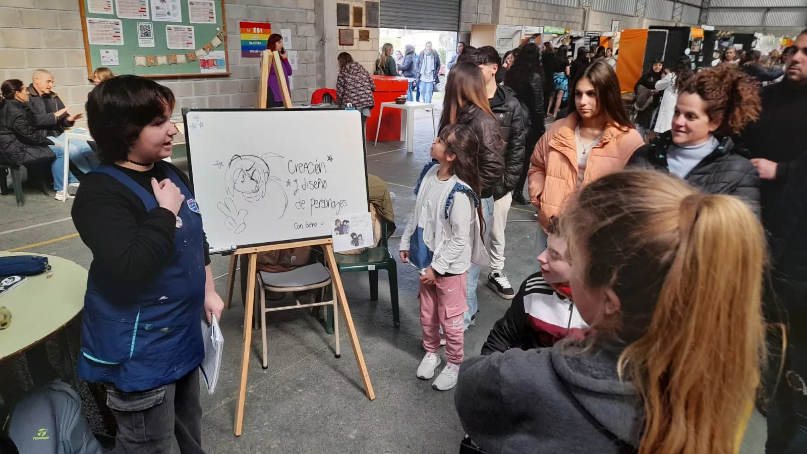 Durante el desarrollo de la feria de ciencias, también estuvo acompañando la estudiante de Artes Visuales Berenice Aguilera con su pintura en vivo y su taller de creación de personajes , coordinado por la EMATYP de la orientación prof Mercedes Castaños.