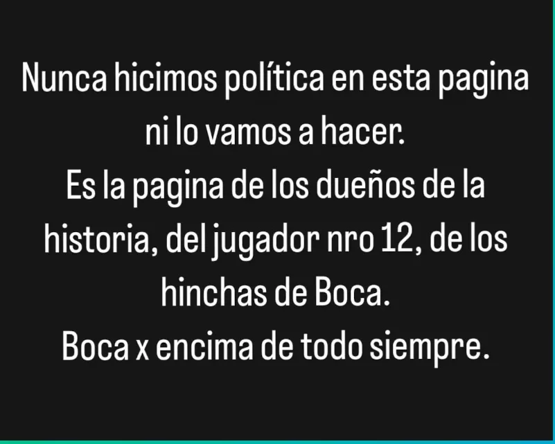 “Les hacemos un recordatorio a los que mandan mensajes pidiendo que saquemos a la dirigencia actual”, escribió. Y, luego aclaró: “Nunca hicimos política en esta página ni lo vamos a hacer”. Tras la renuncia de Martínez luego de la derrota del equipo de la Ribera por 2-0 ante Belgrano, Juan Román Riquelme se encuentra en la búsqueda de un nuevo director técnico que tome las riendas del equipo y los desafíos que le restan al Xeneize en 2024.