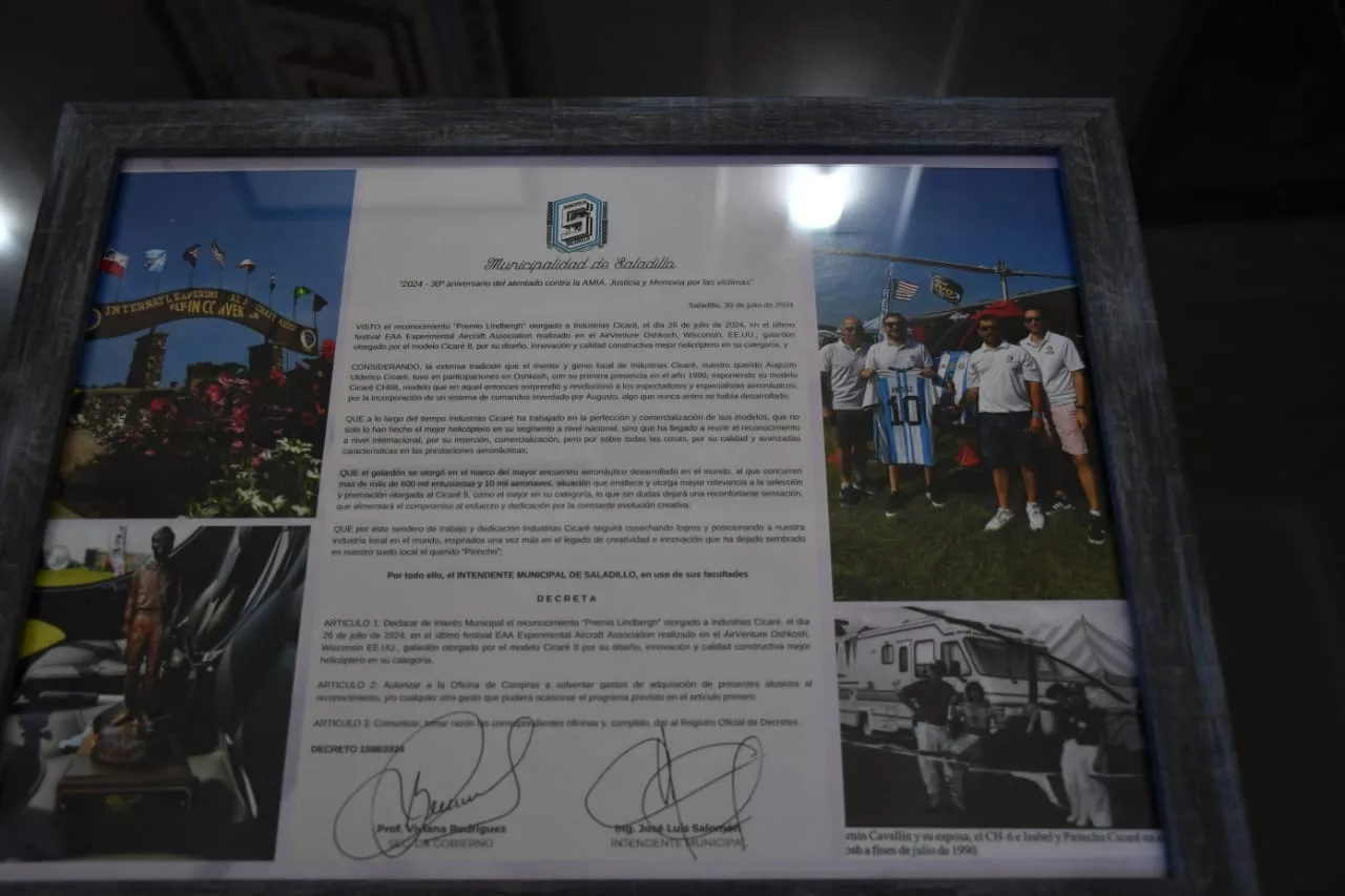 Dicho Decreto declaración de Interés Municipal el reconocimiento Premio Lindberg otorgado a Industria Cicaré el pasado 26 de Julio de 2024 en el último festival EAA , Experimental Aircraft Association realizado en el AirVenture OshKosh Wisconsin, Estados Unidos.