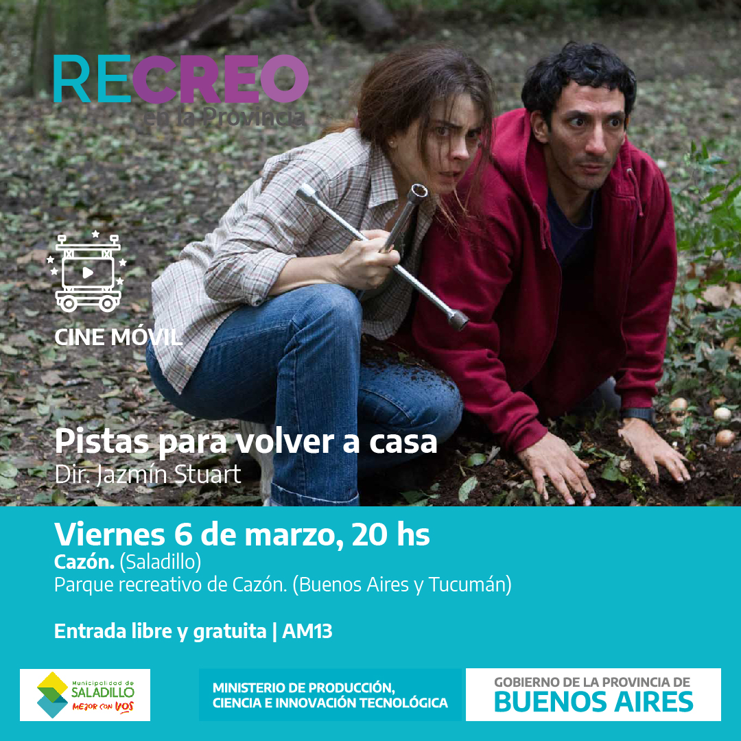 Viernes 06.03 Cine móvil | interior de la Provincia de Buenos AiresCazón (Saladillo) 20 hs, Parque recreativo de Cazón (Buenos Aires y Tucumán)Pistas para volver casa (Mayores de 13)Dir: Jazmín Stuart |
