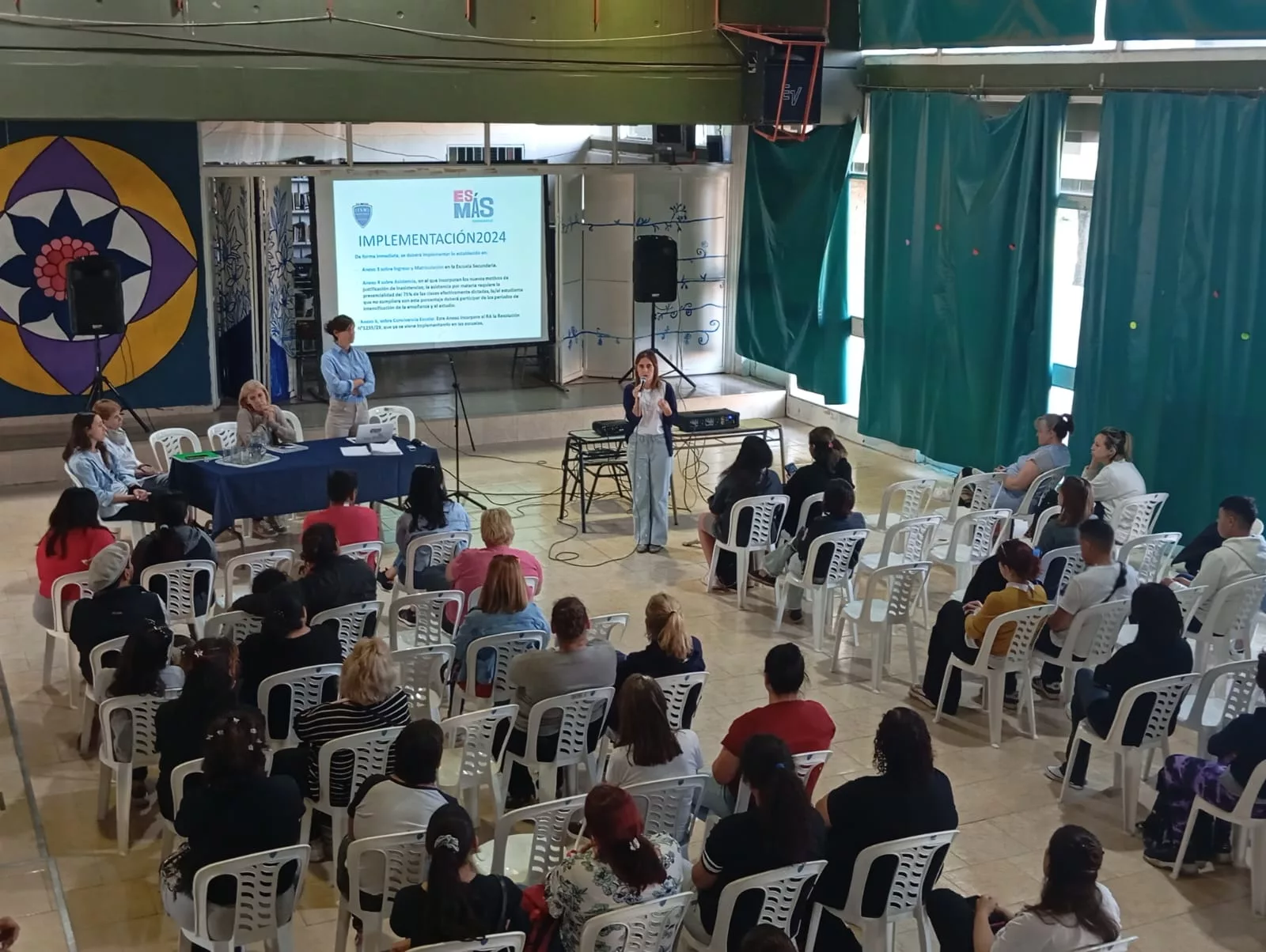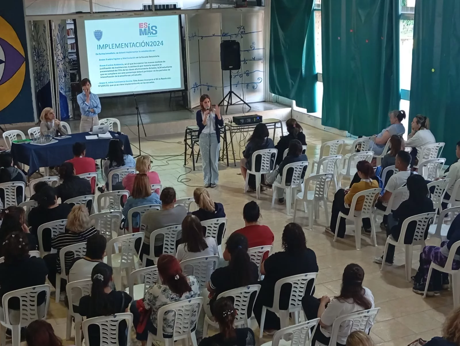 En sede de la Escuela Secundaria 2 Manuel Pardal, se llevó adelante días pasados la reunión con familias de las y los estudiantes sobre el nuevo Régimen Académico del nivel secundario.