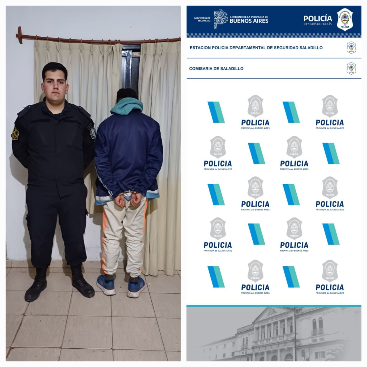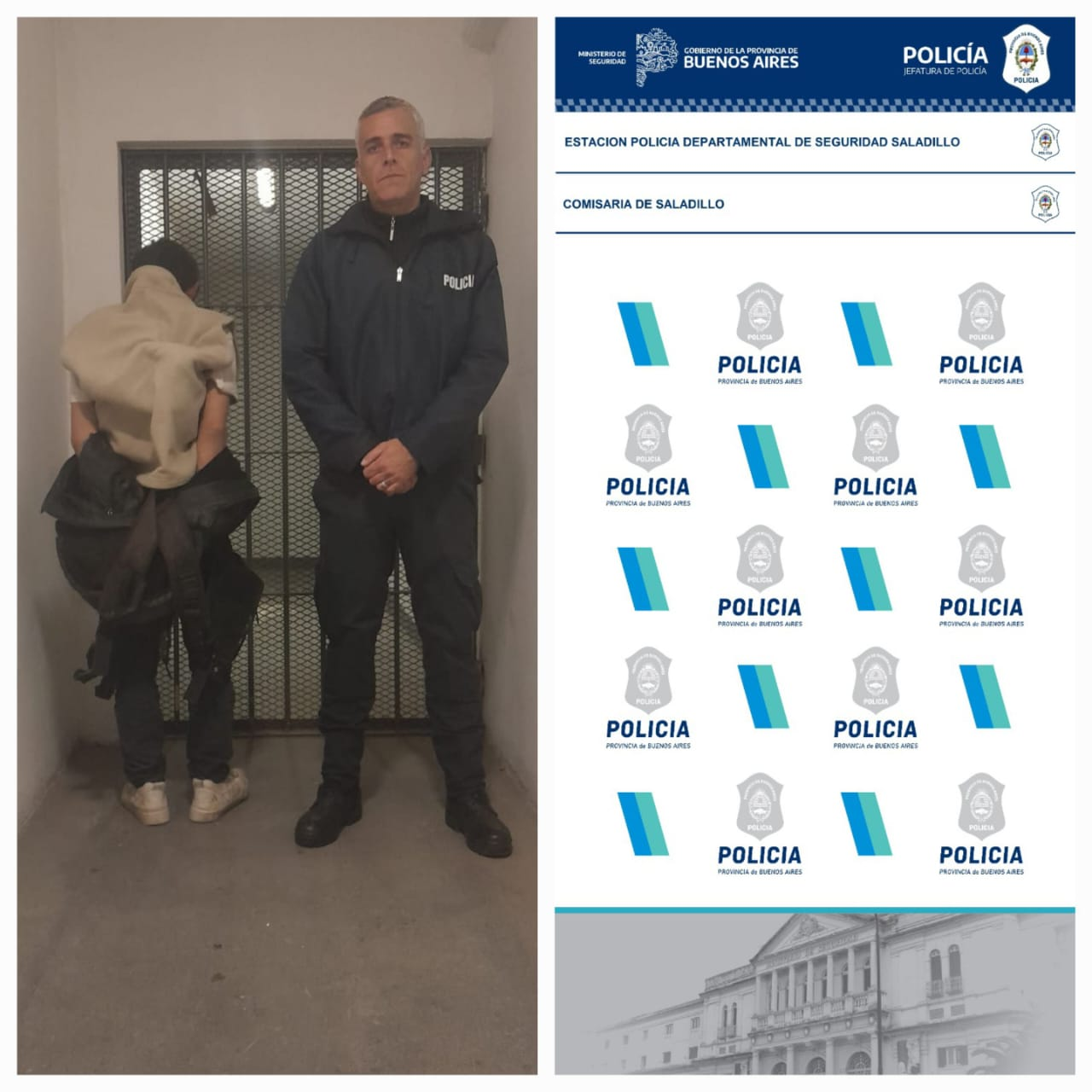 La Comisaría de Saladillo informa que en el dia de la fecha, en horas de la madrugada se recibió un llamado por parte del Centro de despacho y emergencias policiales (101) de que en el interior de la estación de servicio “Shell” ubicada en Ruta Nacional 205 y avenida Frocham de Saladillo se estaría cometiendo un delito. Dado al rápido accionar por parte del personal policial como así también por parte del Centro de monitoreo municipal quien observaba todo lo ocurrido en “vivo”, se logro efectivizar la aprehensión de una persona de sexo masculino, oriundo de esta ciudad, con antecedentes penales, quien momentos antes portando un arma tipo replica intimido y encerro dentro del baño al encargado de dicho lugar y a los clientes ocasionales.