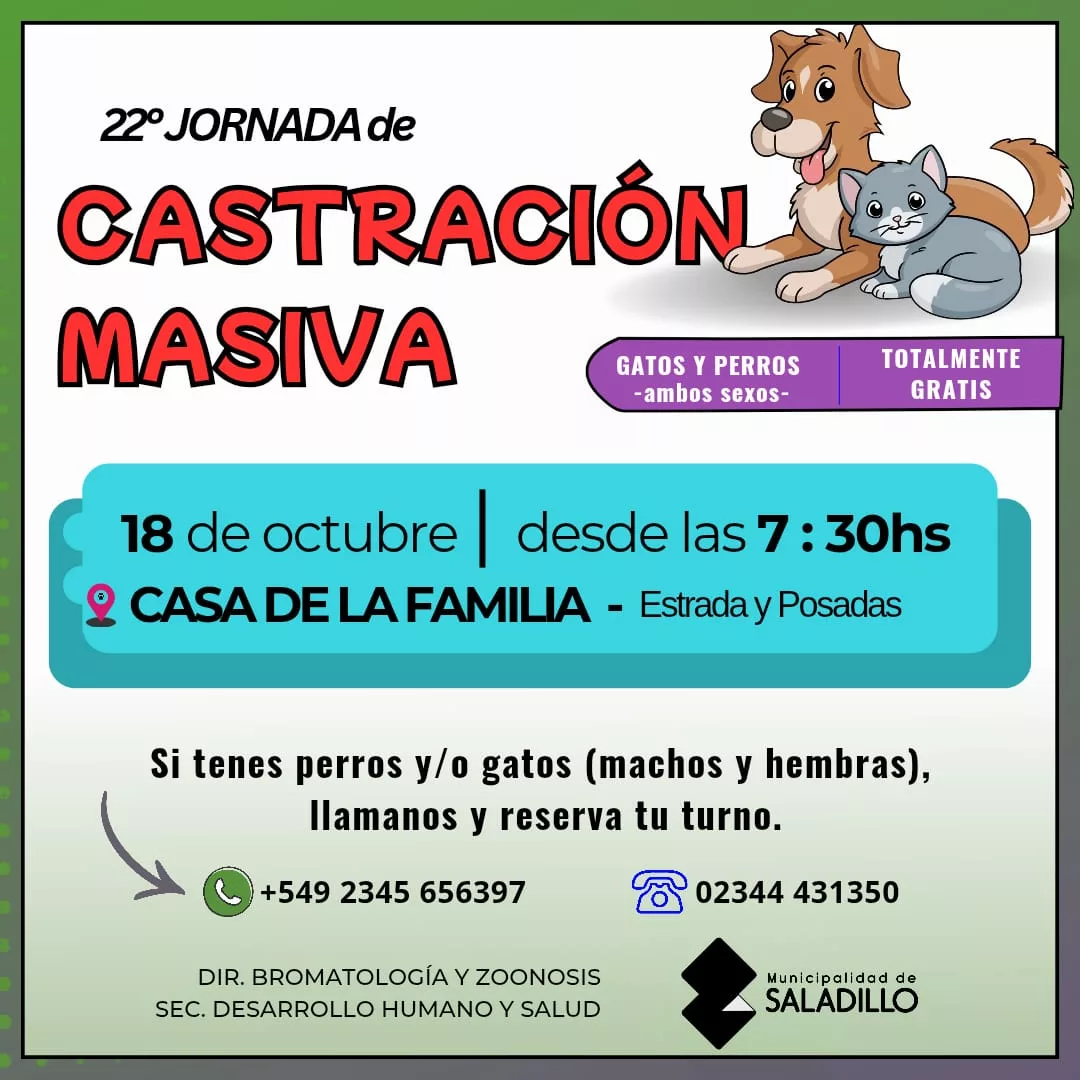 🐶 VIGÉSIMA SEGUNDA 𝖩𝖮𝖱𝖭𝖠𝖣𝖠 𝖽𝖾 𝖢𝖠𝖲𝖳𝖱𝖠𝖢𝖨Ó𝖭 𝖬𝖠𝖲𝖨𝖵𝖠🐱