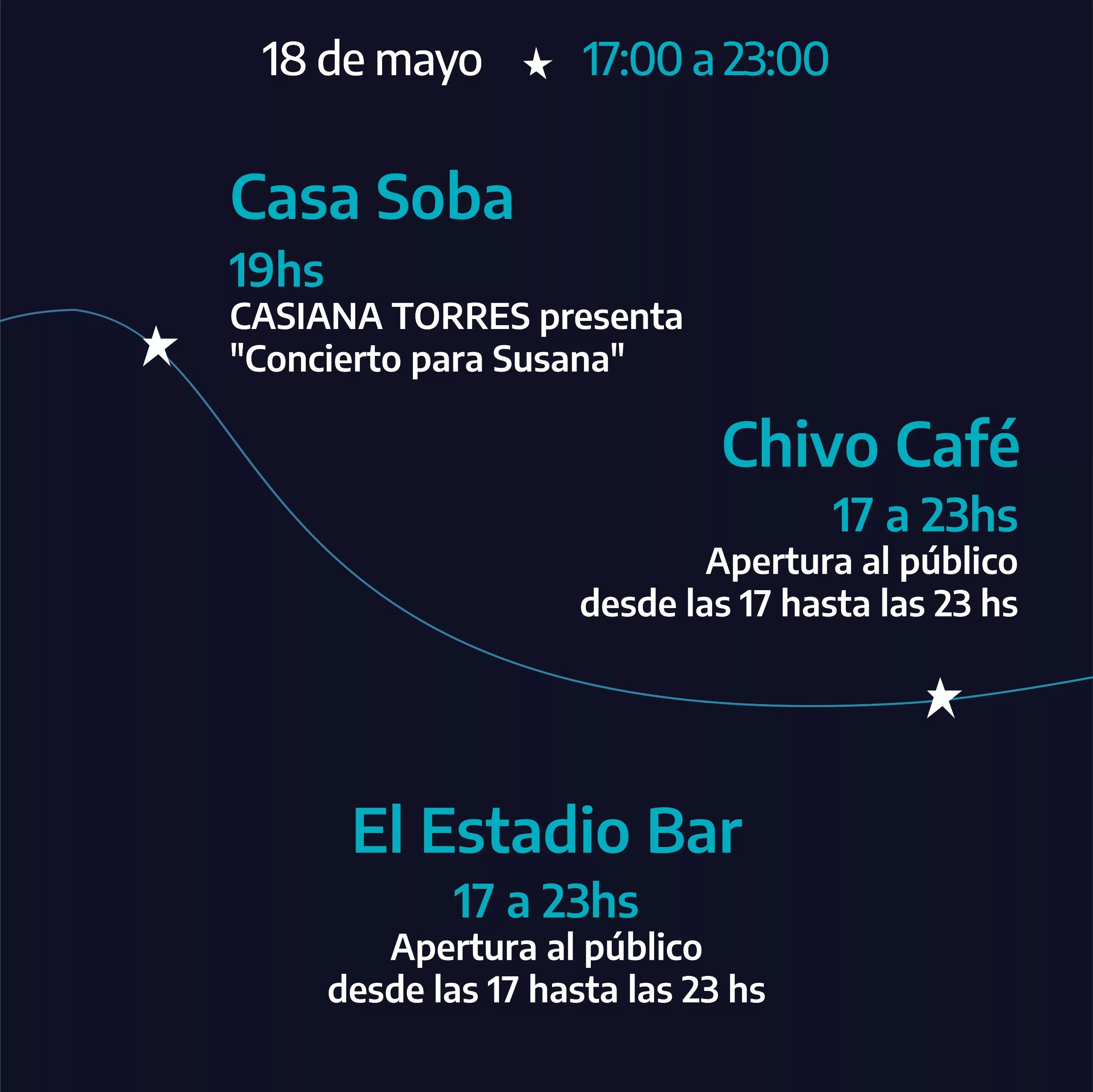 17 a 23hs. Apertura al público desde las 17 hasta las 23hs.