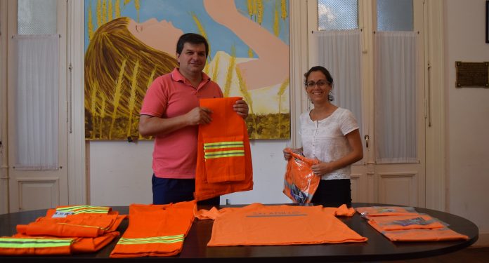 Veinticuatro (24) empleados recibieron su equipo de ropa de trabajo compuesto por pantalón y remera. Los mismos cumplen las normas de seguridad laboral para la tarea que hacen. Cuentan con bandas reflectivas y brindan además identificación propia del área.
