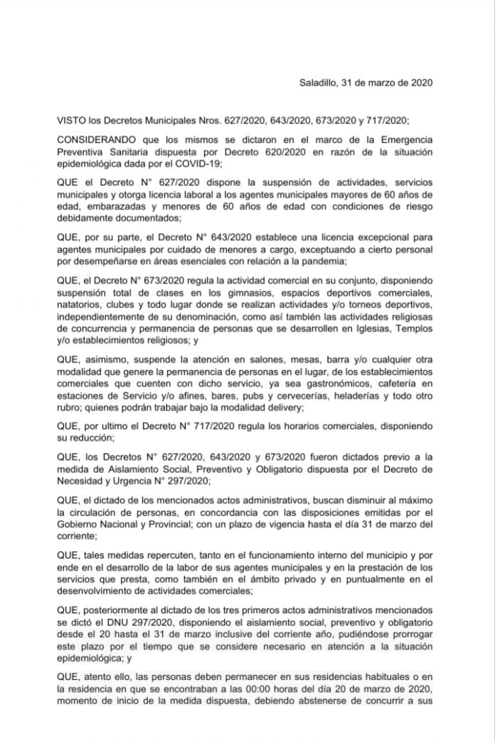 Saladillo, 31 de marzo de 2020