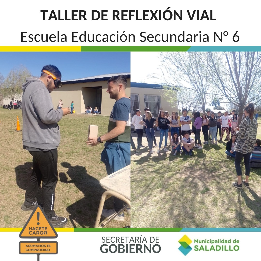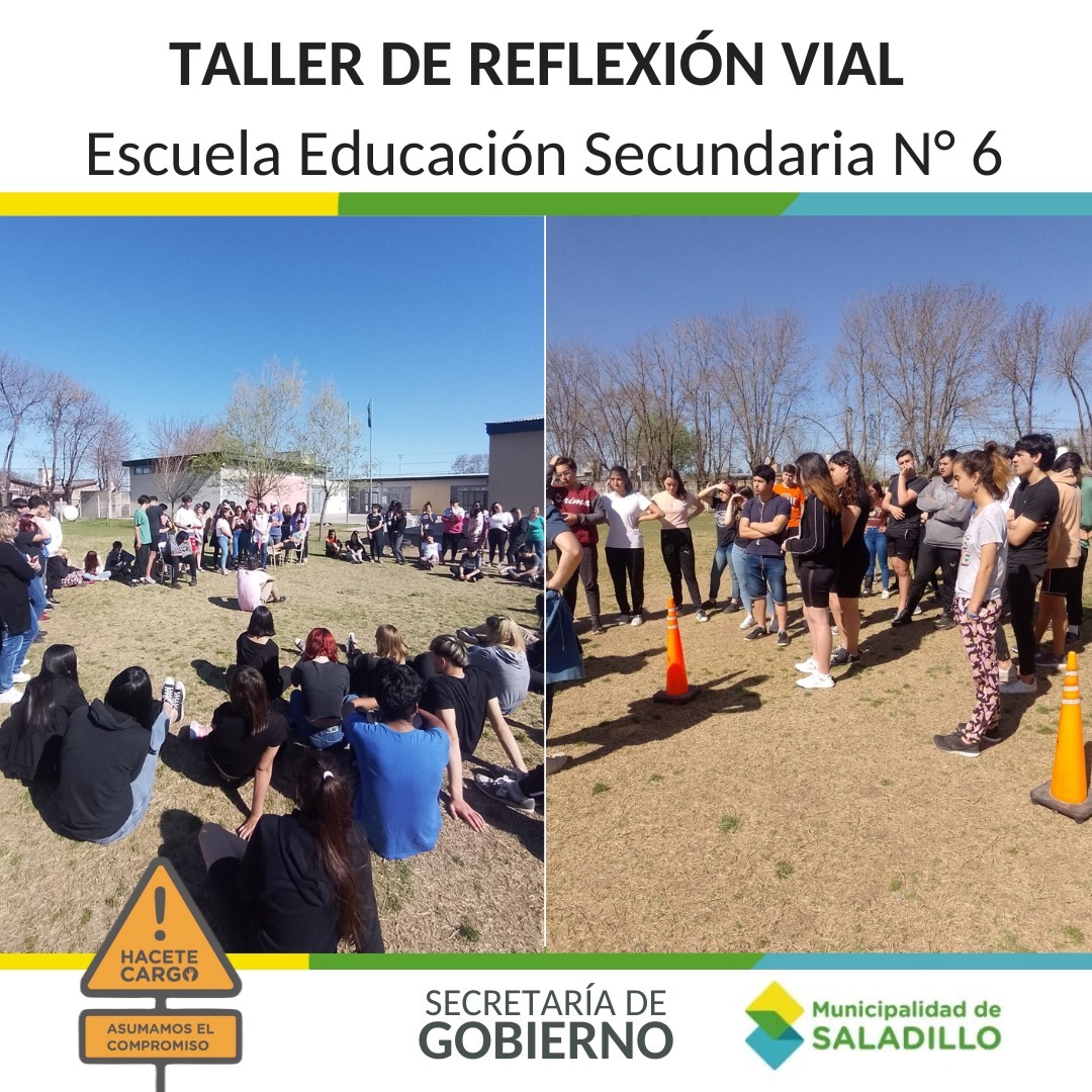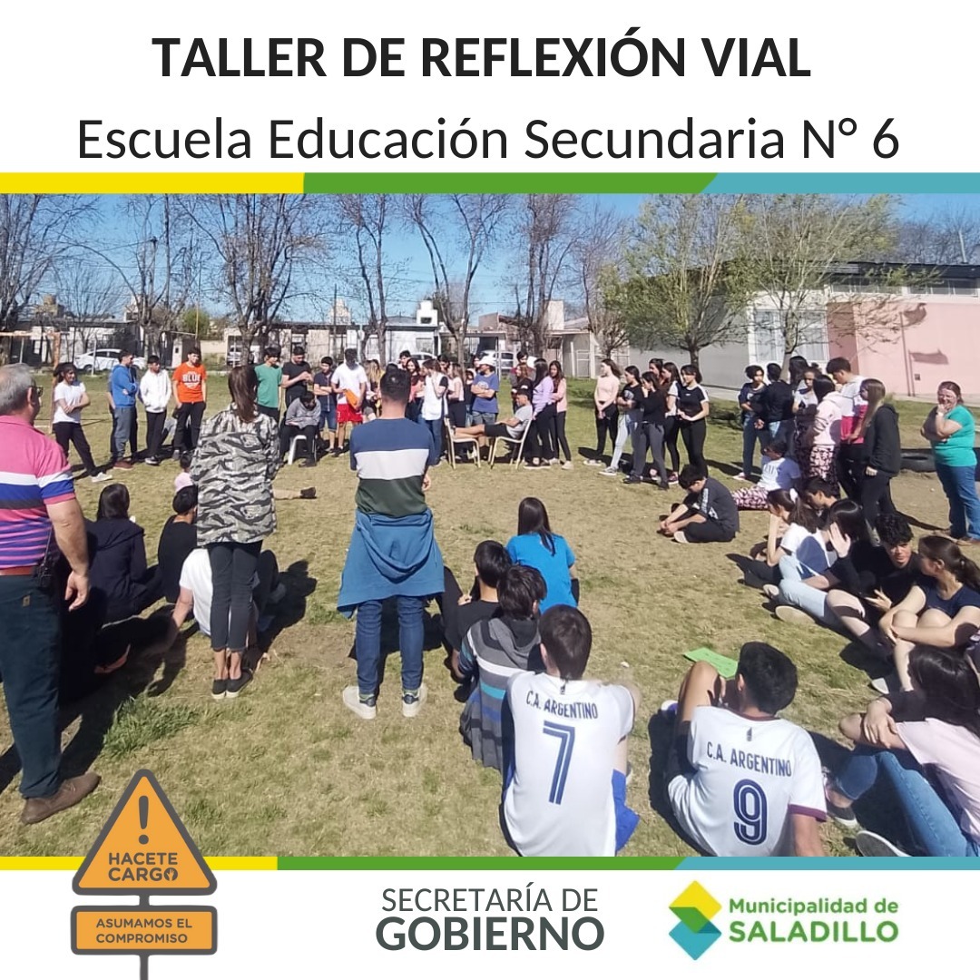 Desde la Secretaría de Gobierno de la Municipalidad de Saladillo, en particular la Dirección de Juventudes y la Dirección de Seguridad Vial, estuvieron presentes en la Escuela Secundaria N° 6, con el taller de Reflexión sobre conductas viales.