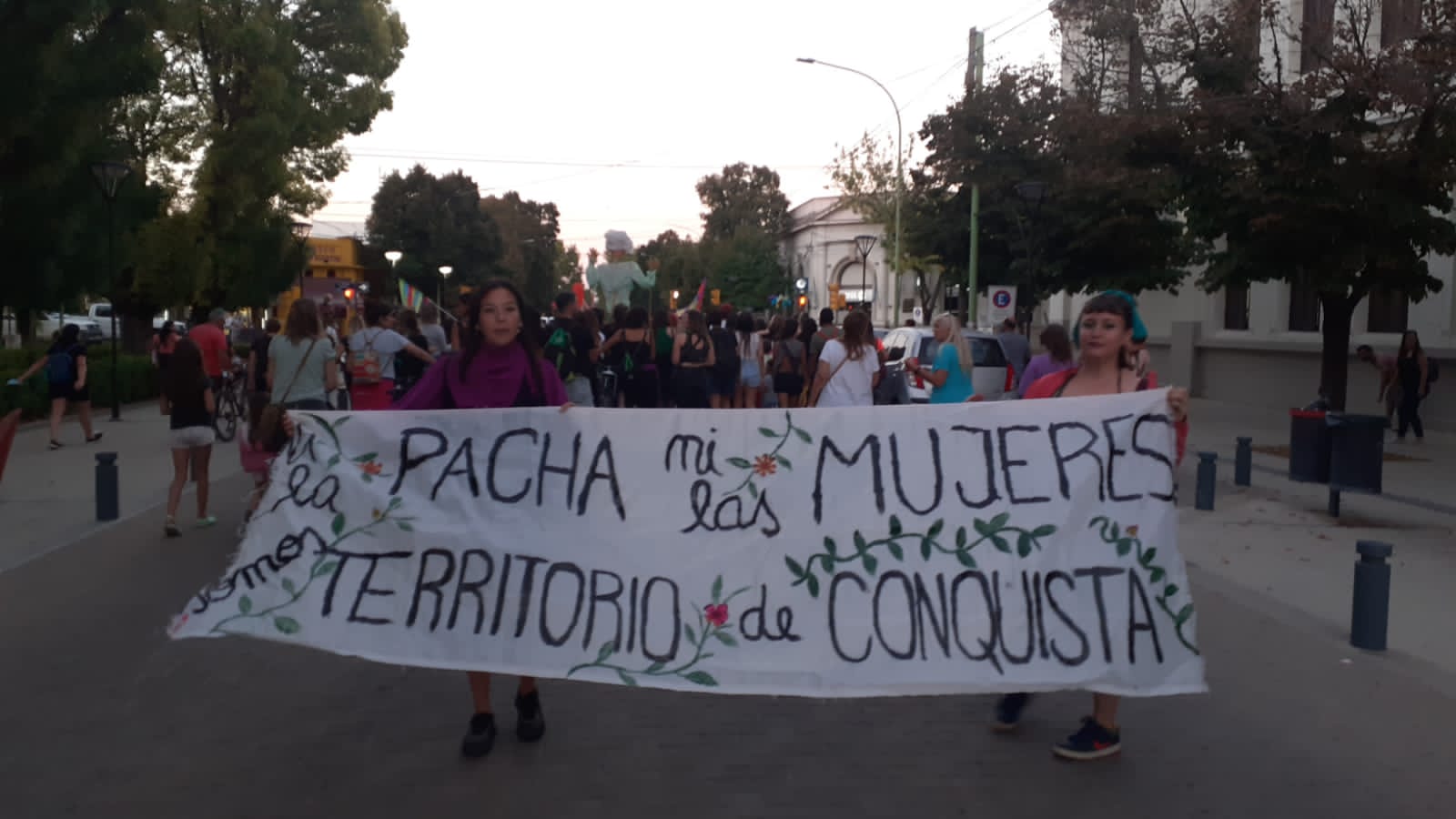 Desde la 18 hs un gran número de mujeres se encontraron en la plaza Paseo de los Inmigrantes para marchar y reclamar por sus derechos.