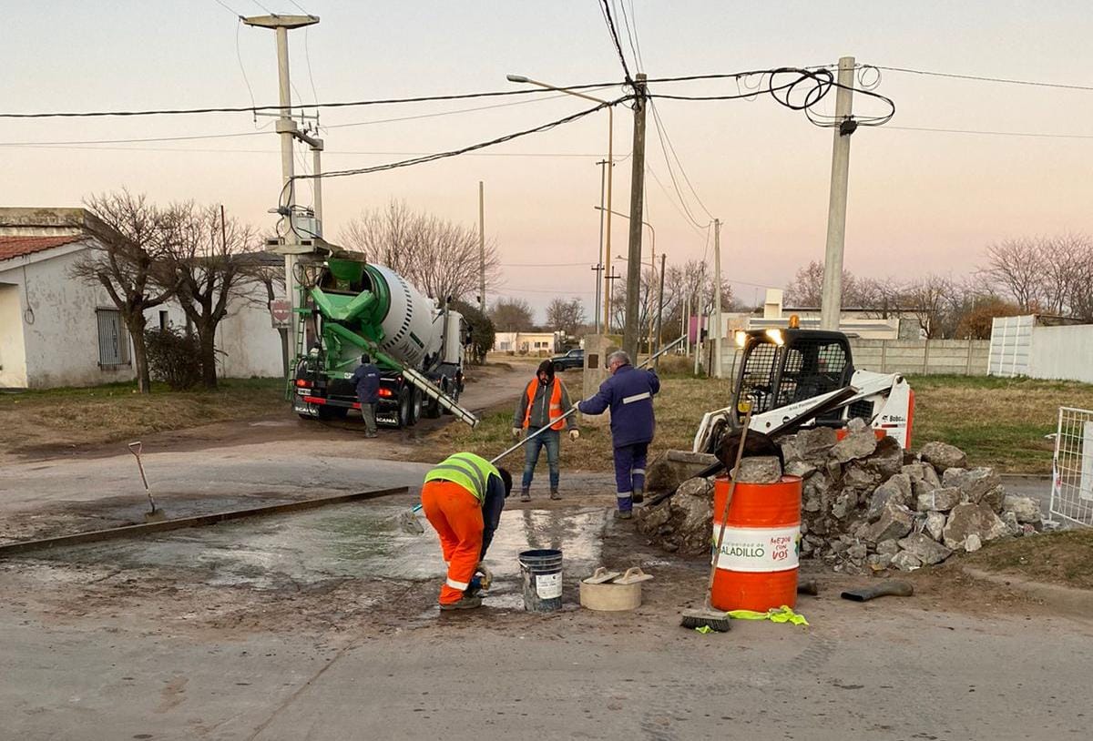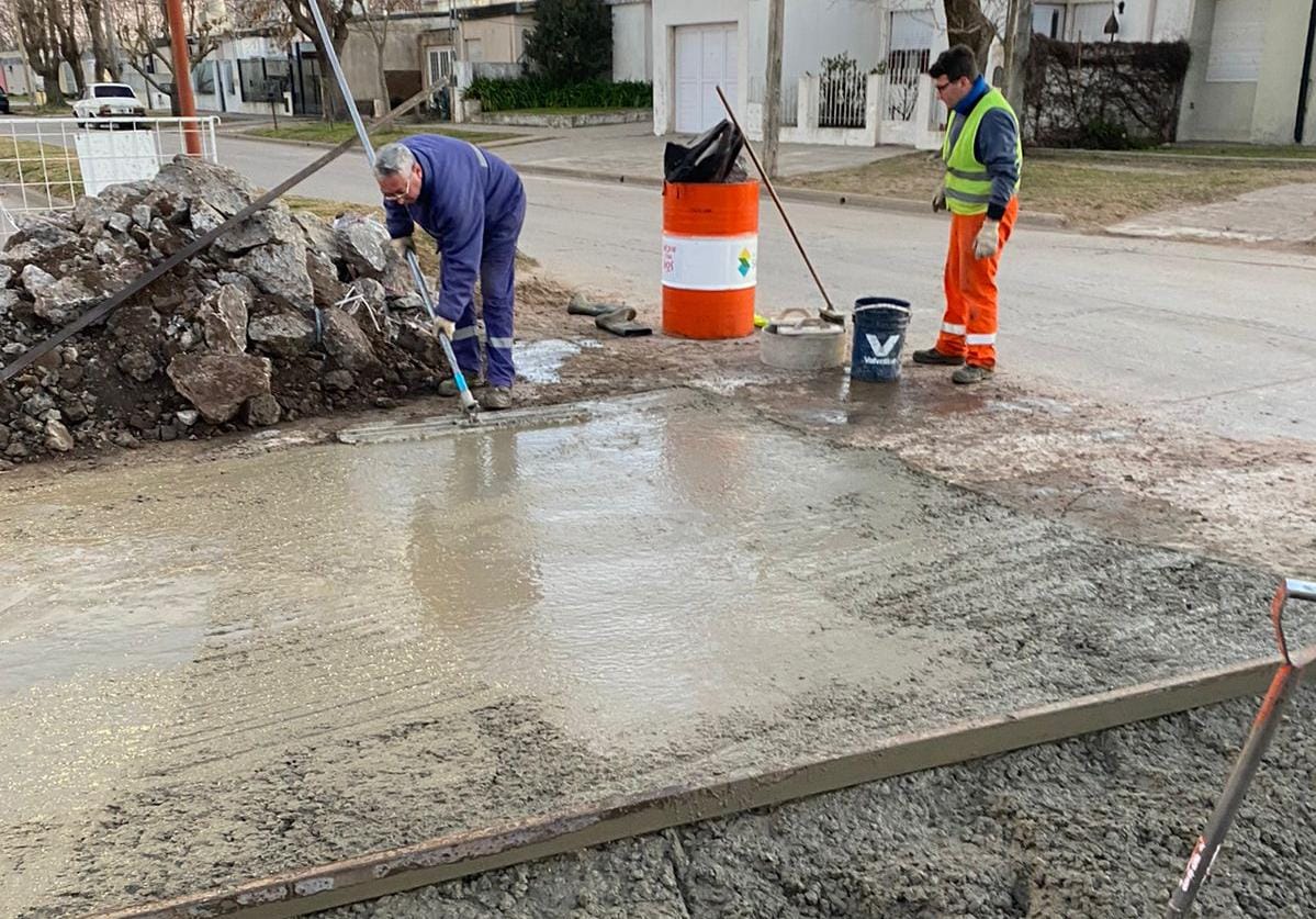 La cuadrilla de pavimento que depende de la Subsecretaría de Servicios Públicos, realizó el llenado con hormigón H30 en el sector de pavimento que previamente se había removido por su mal estado en avda Sanguinetti y De María.