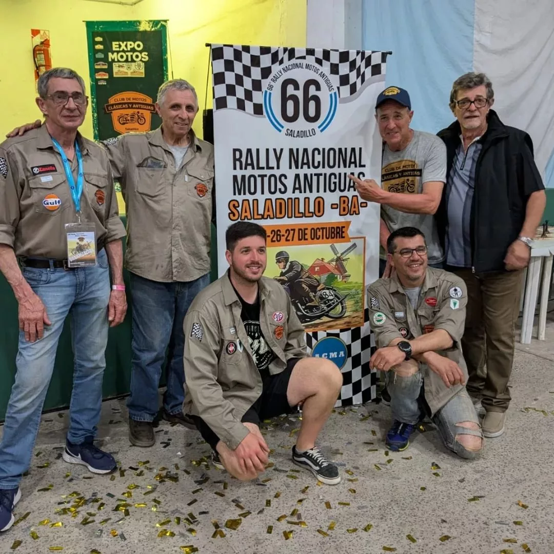 “Increíble fin de semana vivido en Saladillo. Si bien teníamos plena confianza en lo que hacíamos, nunca imaginamos la dimensión de este gran evento como lo fue el 66° Rally Nacional de Motos Antiguas. Sinceramente jamás vivimos algo igual, un fin de semana increíble. Agradecer a los 125 inscriptos porque ellos hacen grande este tipo de actividad. Sin dudas, también al grupo que hizo que esta locura se hiciera realidad, como Juan Ignacio Formaggio, Guillermo Buonanduci, Gustavo Delrieu, Gustavo Clos y sra, Leo Mena y Joha, Eduardo Dezeo y Alejandra Iturre. Verdaderamente no solo se pusieron la camiseta del club, sino que le pusieron toda la garra y la pasión posible para llegar a buen puerto. A todas la áreas de la Municipalidad que estuvieron colaborando y sobre pasaron nuestras expectativas, como Nico Tosca de la Subsecretaria de Deportes, Leticia Colas de la Dirección de Turismo, Marcos Dermas de la Dirección de Tránsito y su gente, Pepe Onis del Vivero de Cazón y el personal de cocina de la Muni, una coordinación increíble para darnos el mejor Rally de estos cinco años en que comenzamos con esta actividad. También a Roberto Pellinacci, presidente de la agrupación Cóndor de Mendoza y presidente de la Asociación de clubes de Motos Antiguas (ACMA), quien desde junio estuvimos en contacto, guiándonos para que salga de lo mejor. Agradecer a la gente de El Payador, Cicaré Helicópteros, Museo Chivo Café, Casa Susana Soba y a la comisión del club Cazón, quienes nos atendieron excelentemente y los muchachos quedaron encantados por todo.