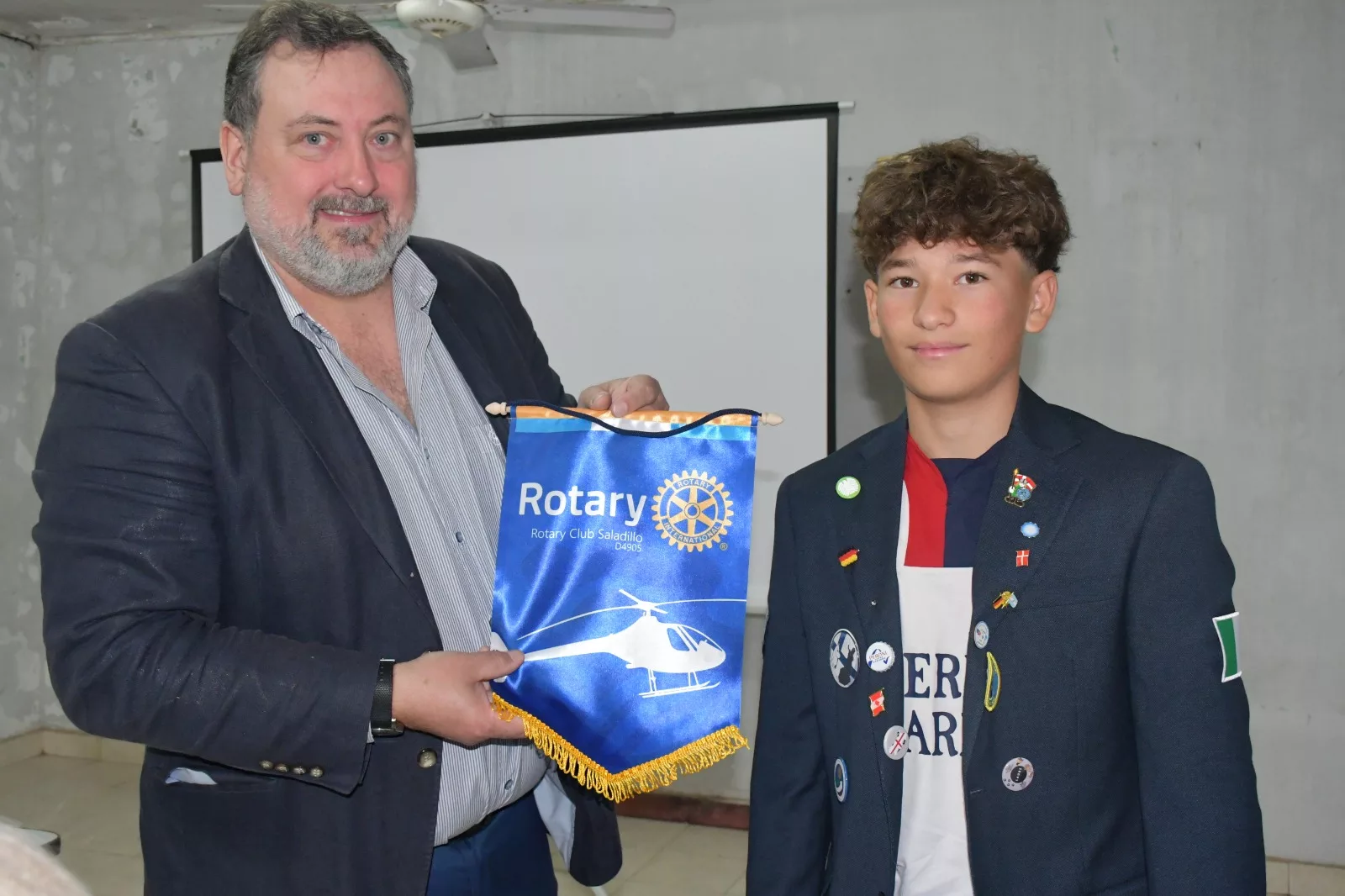 Durante la bienvenida del nuevo inbound se presentó el nuevo banderín de intercambio, que homenajea a Augusto Ulderico Cicaré, por lo que también contó con la presencia de la Sra. Isabel Ponce.
