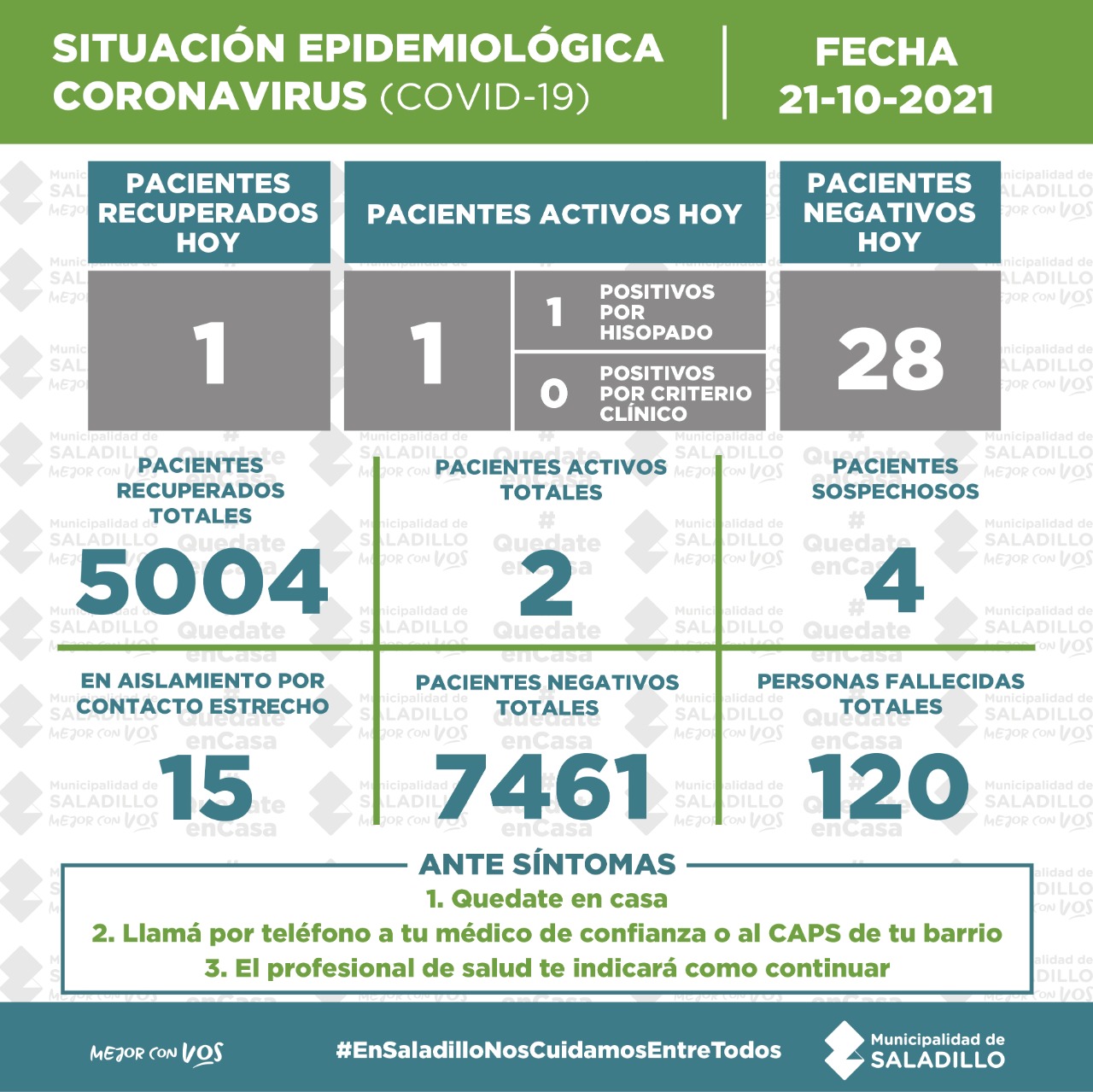 ✔ 15 pacientes en aislamiento por contacto estrecho.